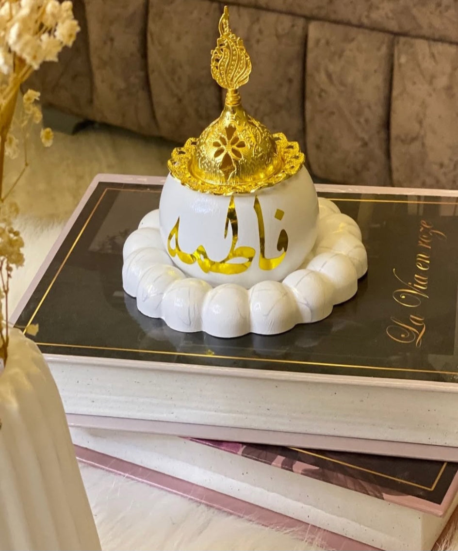 Ensemble de mini brûleur d’encens de luxe deposé sur un dessous de verre en bulles.
