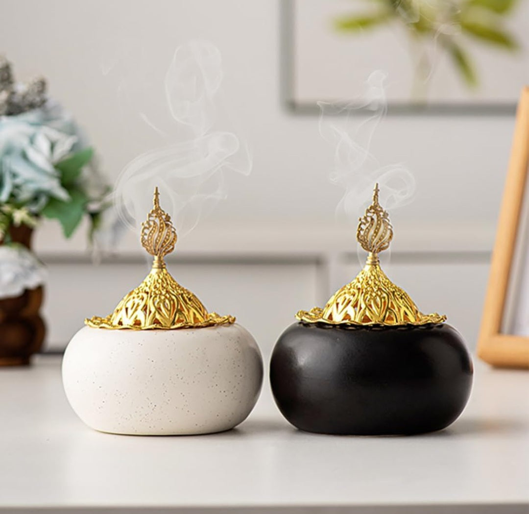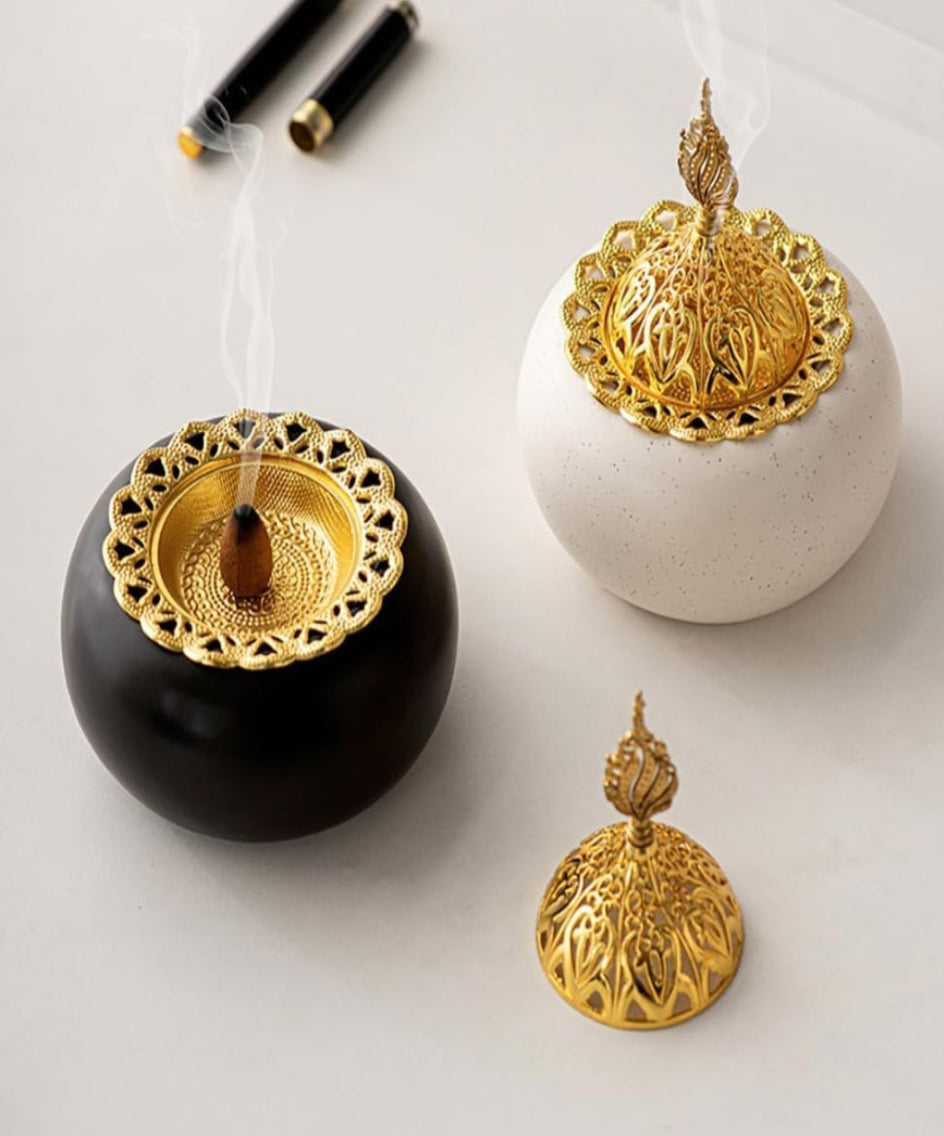 Le mini brûleur d’encens de luxe diffuse calme et élégance.